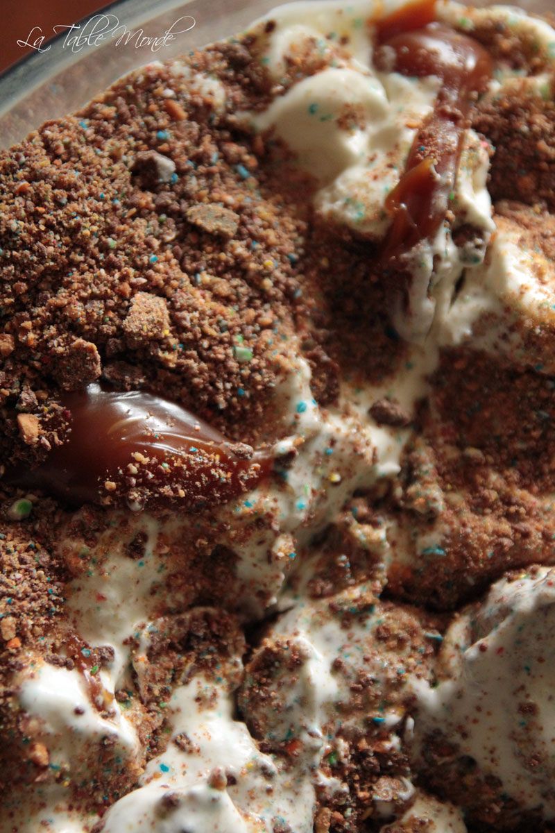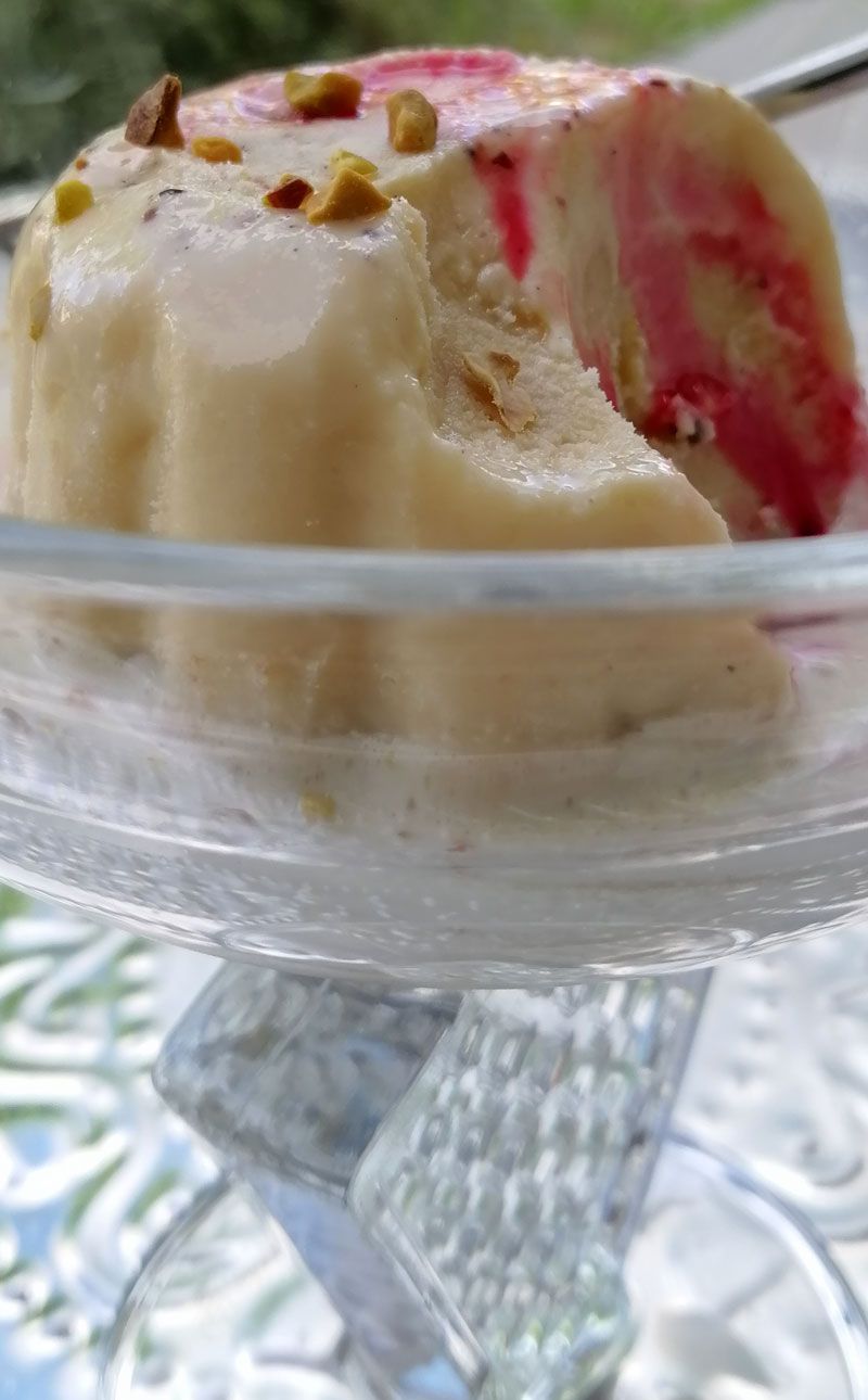 Lire la suite...Sundae crème glacée confiture de fraises et coulis de rose
